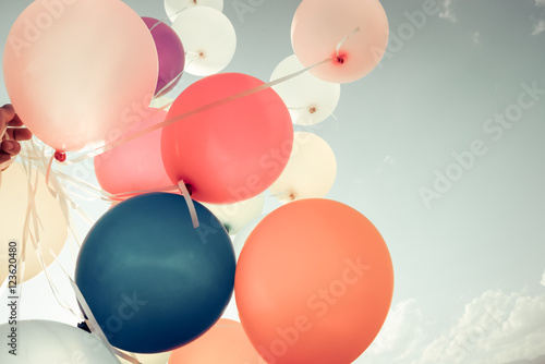 Colorful Balloons Flying On Sky With A Retro Vintage Filter Effect